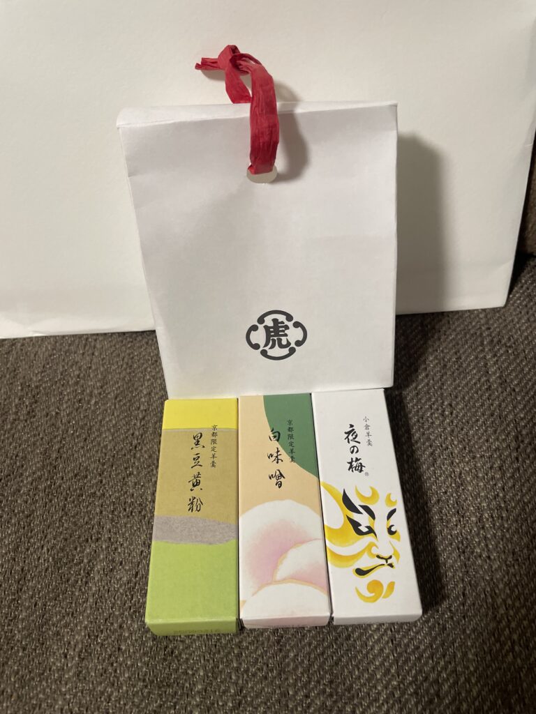 京都のお土産でいただいた京都限定のとらやさんの小形羊羹です